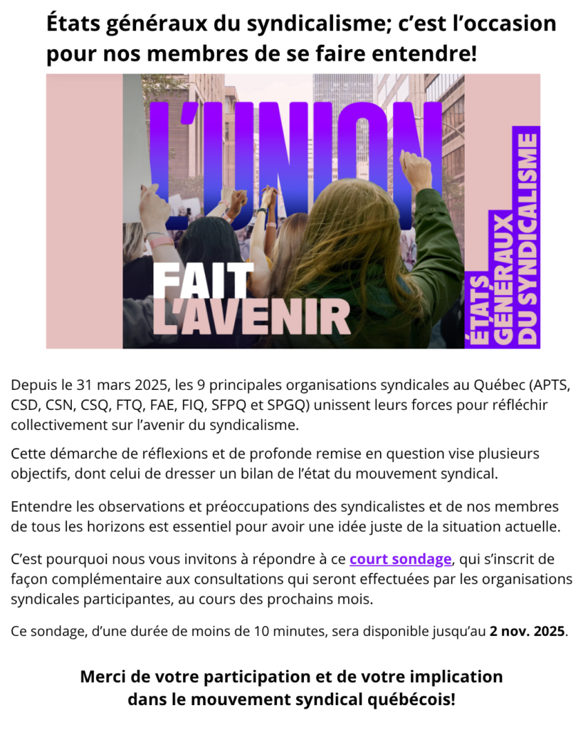 États généraux du syndicalisme; c’est l’occasion pour nos membres de se faire entendre!