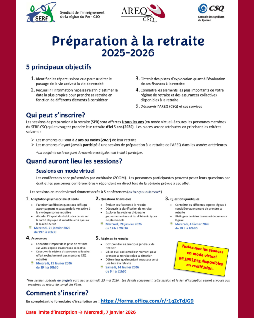 Date limite d’inscription → Mercredi, 7 janvier 2026